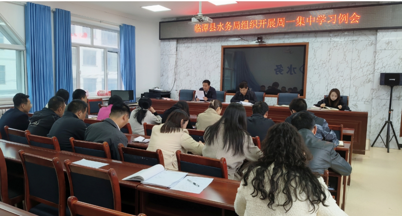 水务局组织开展周一集中学习例会 4月21日,县水务局召开周一学习例会,会上学习了《习近平总书记关于党的建设的重要思想概论》、《习近平关于加强党的作风建设论述摘编》、中央列出违反八项规定清单80条、中央八项规定“四问四答”、群众身边不正之风和腐败问题的16个具体表现、《中国共产党简史》等部分内容和有关文件神,随后部分科级领导干部和一般干部就学习情况进行了交流研讨,同时对群众身边不正之风和腐败问题、水旱灾害防御值班、安全生产、企业包联全覆盖行动、优化环境、水资源、河湖长制、工作纪律等重点工作进行了安排部署。
