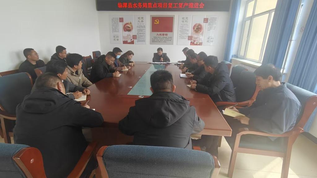 临潭县水务局 召开重点水利项目复工复产推进会 3月19日,临潭县水务局组织召开全县重点水利项目复工复产推进会,局主要负责人、相关领导、各重点水利项目负责人及各施工、监理单位相关负责人参加会议。