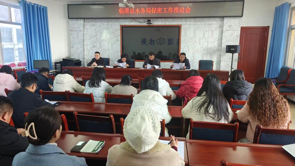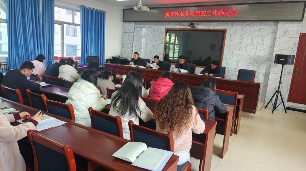 临潭县水务局召开保密工作推进会筑牢安全防线护航水务发展12月22日,临潭县水务局组织召开保密工作推进会,深入学习贯彻习近平总书记关于保密工作的重要指示精神,全面落实中央、省、市、县关于保密工作的部署要求,进一步强化全局干部职工保密意识,压实保密工作责任,筑牢水务领域保密安全防线。局党组书记、局长主持会议,全体干部职工参加会议。
