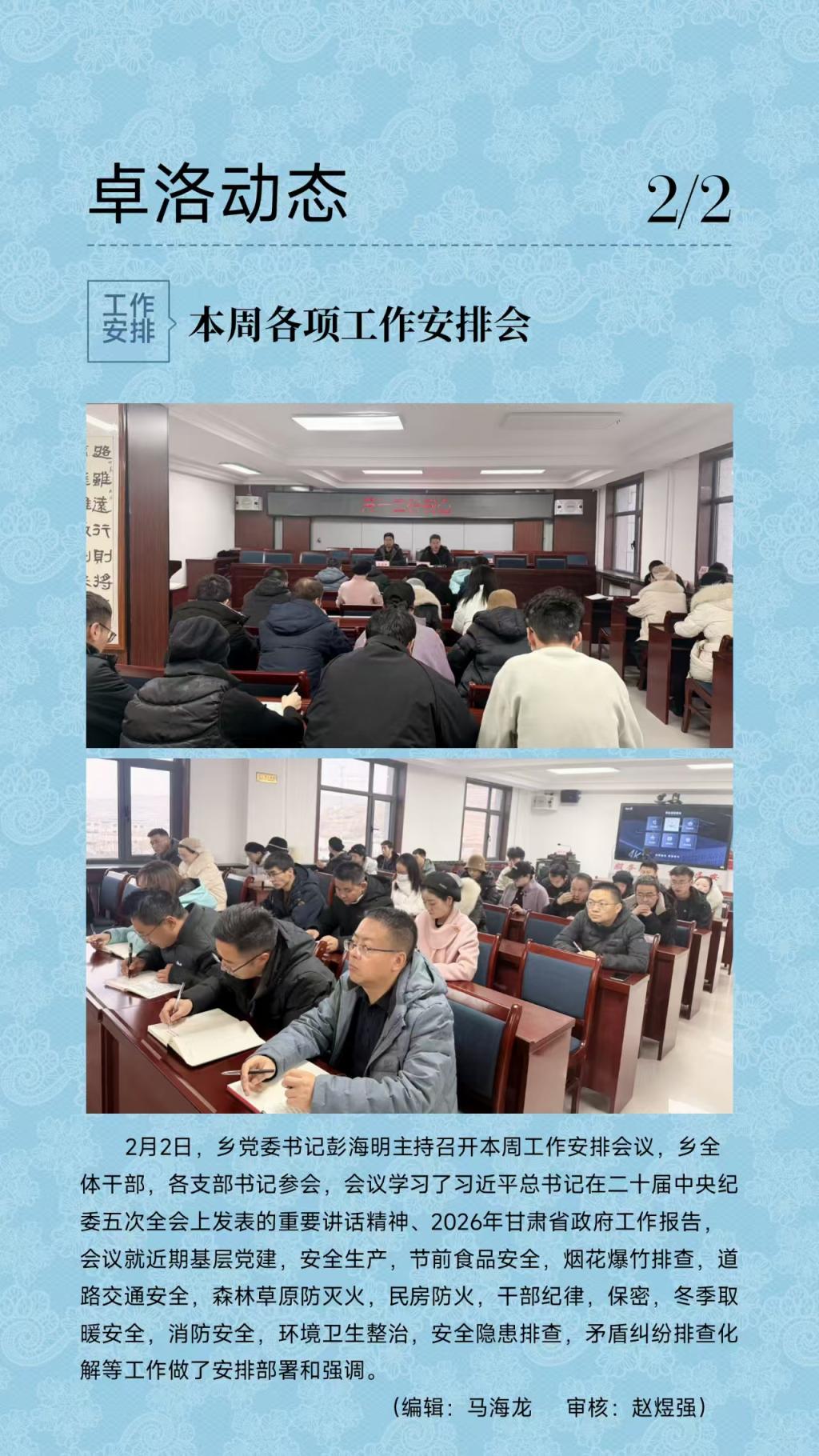 本周各项工作安排会