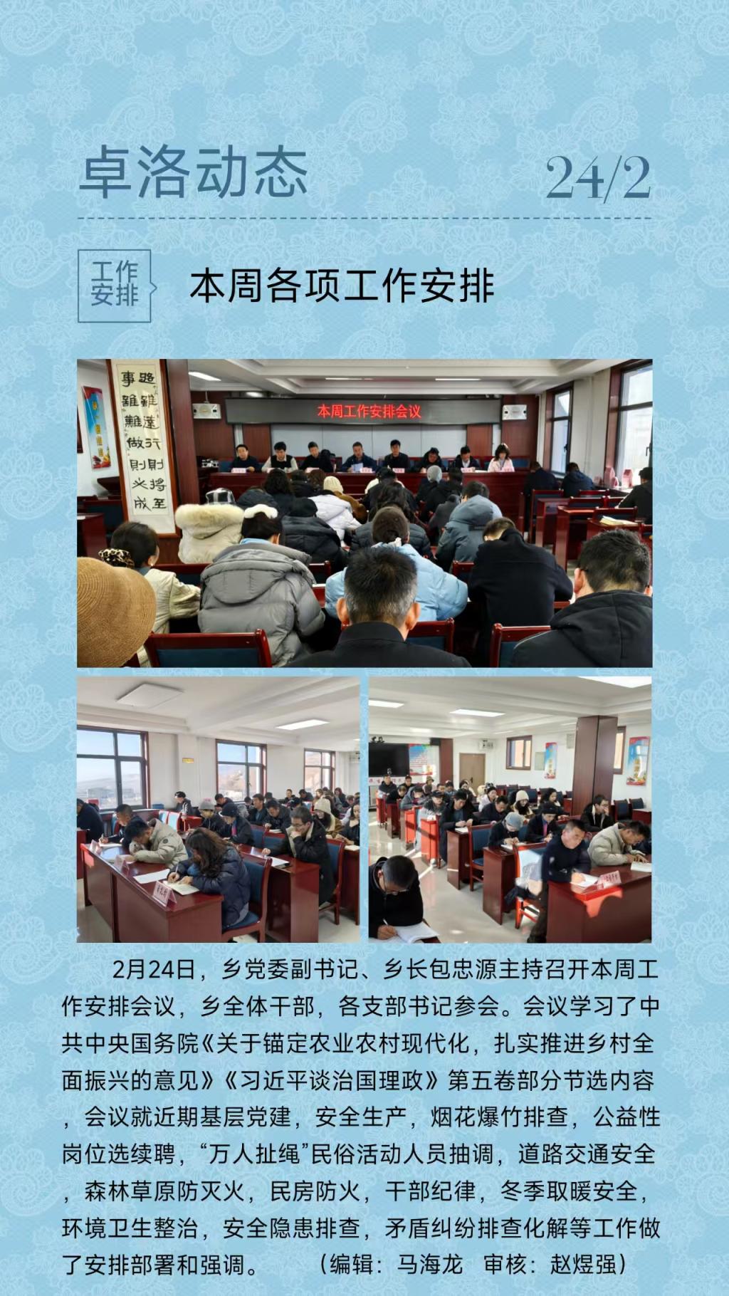 本周各项工作安排